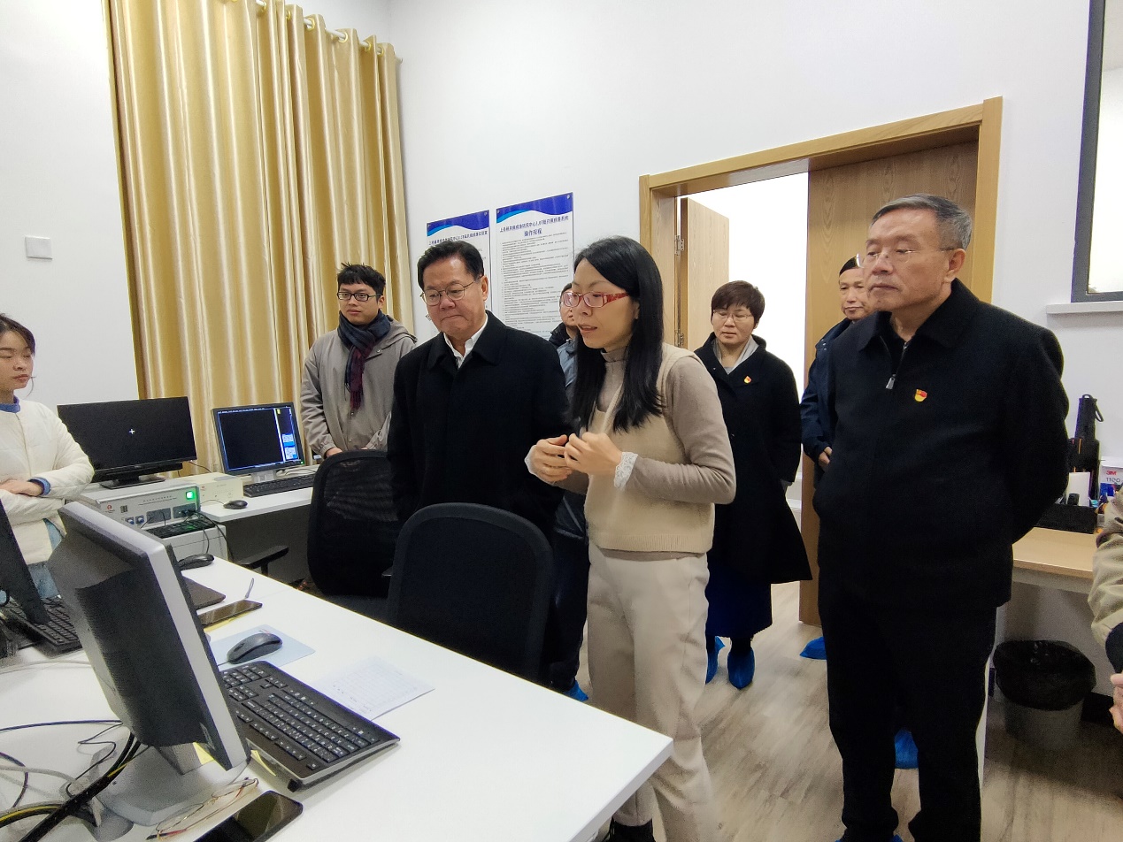 1月6日,教育部党史学习教育高校第六巡回指导组组长朱崇实,副组长韩晓峰、黄宗明,小组成员唐拥华、陈兰兰、张海涛一行参观了上海外国语大学磁共振成像研究中心。