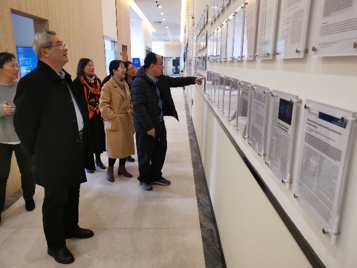 最后,张旭院士参观成果墙,并听取潘煜院长对实验室现状及未来发展规划的汇报。张院士强调,作为“多语种+”卓越人才的孵化培育基地和国别区域全球知识的关键供给地,我院各实验室要立足当下,成为外国语言文学学科、工商管理学科等学科的创新支撑,为建成全球话语能力建设的战略支撑地提供技术、战略等层级的支持与保障,为积极建设新文科背景下的先进智库强本固基。