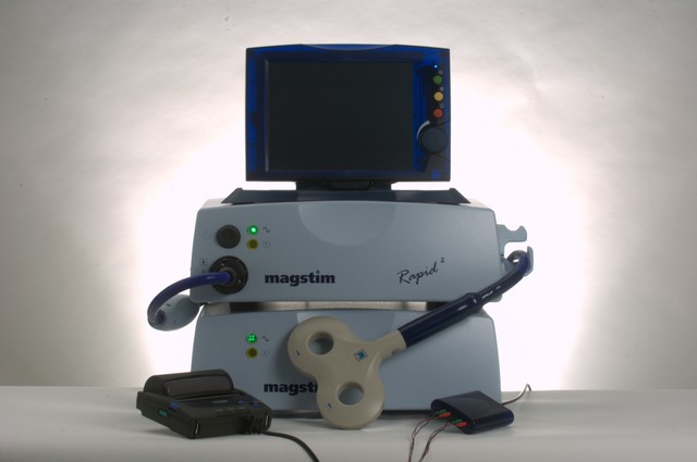 MAGSTIM影像导航经颅磁刺激系统,是一种兴奋或抑制大脑神经元的无创方法,该方法使用高强度线圈,产生快速变化的磁场脉冲,可以穿过受试者的头皮和颅骨,作用于其下的大脑皮层,诱导神经细胞发生电位活动的改变。
