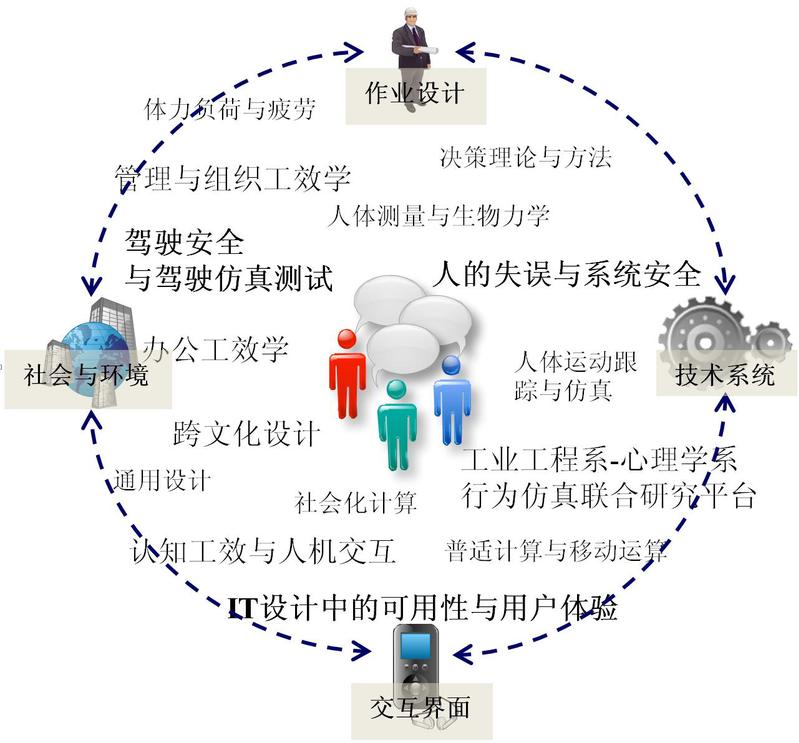 研究所致力于系统中人与工具、机器及环境之间的关系和交互作用,以提升人机系统的总体效率,同时提高人的健康、安全和生活质量。应用对照试验、生理心理测量、人种学观察、计算机模拟与数据挖掘、认知神经科学等多种方法,对人的生理、心理、行为和社会属性与特点进行研究,并将结果应用于作业、产品、工业系统以及周边环境的设计与改善。研究所饶培伦教授与马靓副教授长期运用认知神经科学的方法与仪器研究人因工效学中与用户相关的关键科学问题。