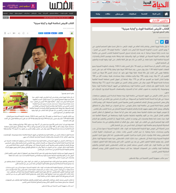 中国驻巴勒斯坦办事处:6月29日,驻巴勒斯坦办事处主任郭伟在巴主流媒体《耶路撒冷报》及《新生活报》发表署名文章《中国抗疫白皮书交出“中国答卷”》。