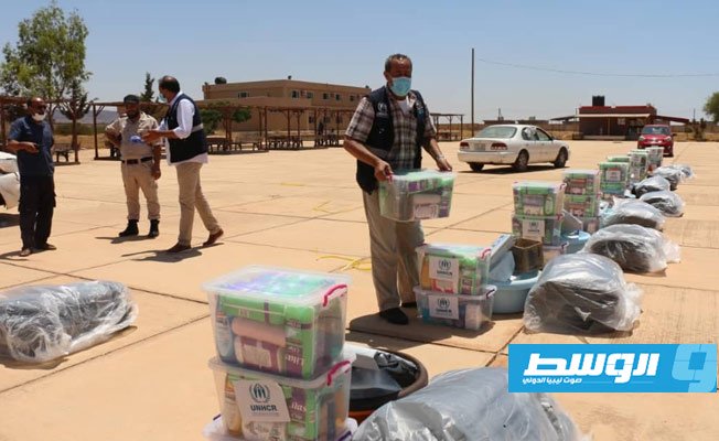 利比亚《中间网》:7月4日,联合国难民署向图尔胡纳市难民发放一批救援物资与清洁用品,帮助其抗击疫情。