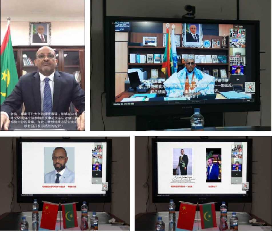 驻毛塔大使张建国、中阿合作论坛事务大使李成文、河北大学副校长李金善、教育部高校国别和区域研究工作秘书处主任罗林教授等致辞,河北大学等高校专家学者做主旨发言,多位毛方友好人士发表视频或书面致辞。河北大学部分师生、中国在毛企业和侨团负责人等近百人参加研讨会。