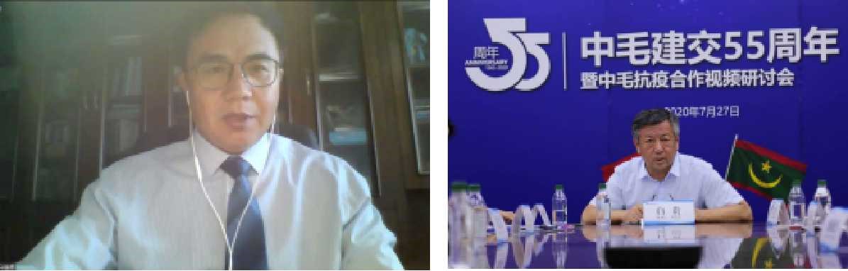 北京外国语大学非洲学院院长李洪峰教授、北京大学外国语学院阿拉伯语系主任林丰民教授、上海外国语大学中阿改革发展研究中心执行主任王广大教授、西安外国语大学亚非学院院长马福德教授、努瓦克肖特大学孔子学院中方院长邵宝辉副教授、浙江师范大学胡美副教授、河北大学伊斯兰合作组织研究中心副主任金强副教授等分别就新冠肺炎疫情对中非、中毛关系的影响及我应对措施、加强中非民间交流和对非公共外交、发展中毛关系对推动建设中非命运共同体的作用、毛塔学者谢赫阿卜杜拉·拜伊希及其伊斯兰教中正思想、中毛卫生及抗疫合作、中毛关系在中国主流媒体上的呈现等问题做了精彩发言。