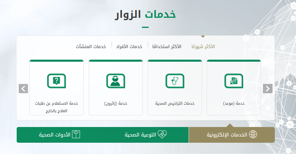 沙特卫生部官网访客服务页面