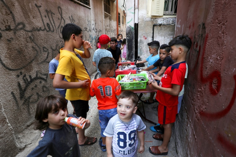 西岸Al-Amari难民营一条街道上的巴勒斯坦儿童