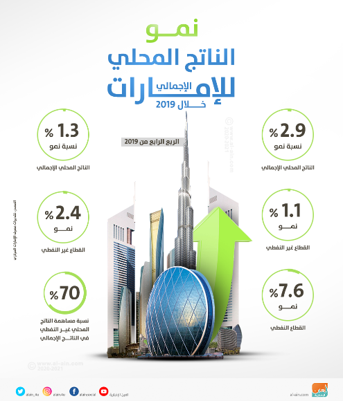 经过四十年的努力,阿联酋非石油经济发展成果显著,现已成为中东地区的金融、商贸、物流、旅游中心和商品集散地,是阿拉伯国家中石油经济成功转型的榜样。阿联酋经济部副部长穆罕默德·谢希在首届“阿联酋经济论坛”上曾表示,阿联酋现已成为西亚北非地区最多元化的经济体之一。2018年阿联酋GDP增长了1.7%,其中非石油行业GDP增长1.3%。根据阿联酋央行公布的数据,2019年阿联酋GDP增长2.9%,非石油行业GDP增长1.1%,非石油行业GDP贡献率达70%。阿布扎比商业银行(ADCB)经济研究组曾在2月份预测,尽管受疫情影响,2020年阿联酋非石油行业GDP增长仍可达到2.6%。
