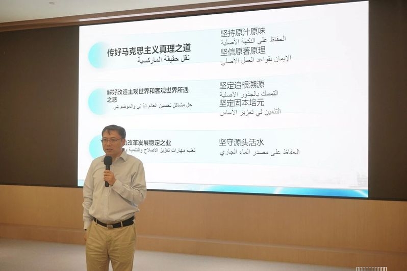 衣永刚在结业仪式上致辞。他代表上海外国语大学和中心,热烈祝贺各位也门官员顺利完成研修。他指出,通过主题讲座、座谈交流、参访调研等形式多样的研修活动,官员们近距离感受了中国高质量发展的最新成果。这不仅是一次难得的调研实践之旅,更是一场跨越文化的思想交流与文明互鉴之旅。明年是中也建交七十周年,第二届中国-阿拉伯国家峰会也将在华召开,期待各位能为中也、中阿加强多层次交流合作注入新动能。