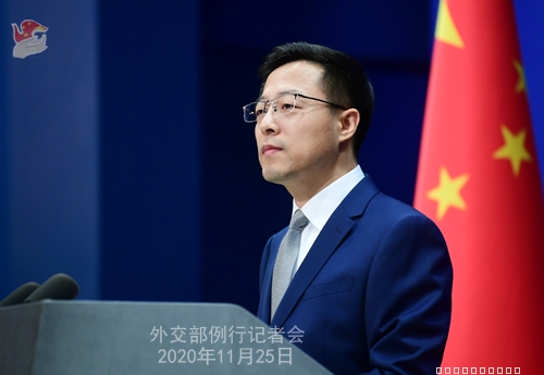 赵立坚:11月24日,中阿合作论坛框架下的第四届中阿新闻合作论坛以视频方式成功举办,国务院新闻办主任徐麟,沙特、埃及、约旦、巴林和黎巴嫩五国新闻部长等政府部门新闻官员、主要媒体负责人参会,围绕“新冠肺炎疫情下媒体在加强中阿共同发展中的责任”主题进行探讨交流。
