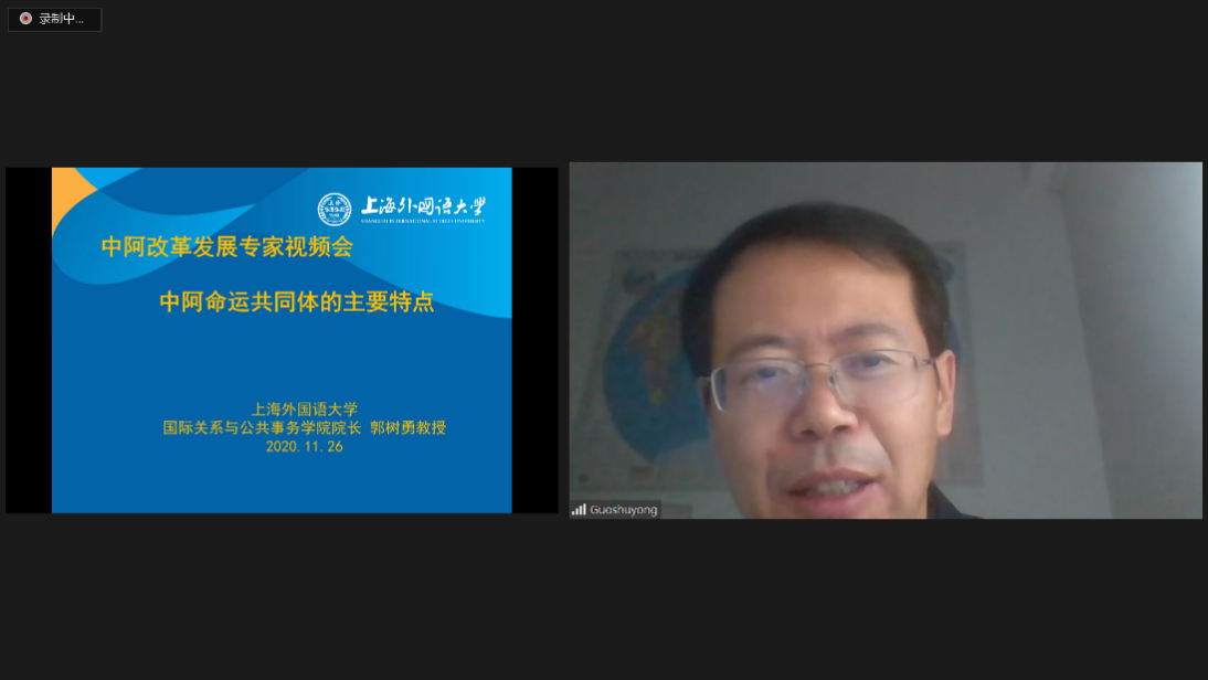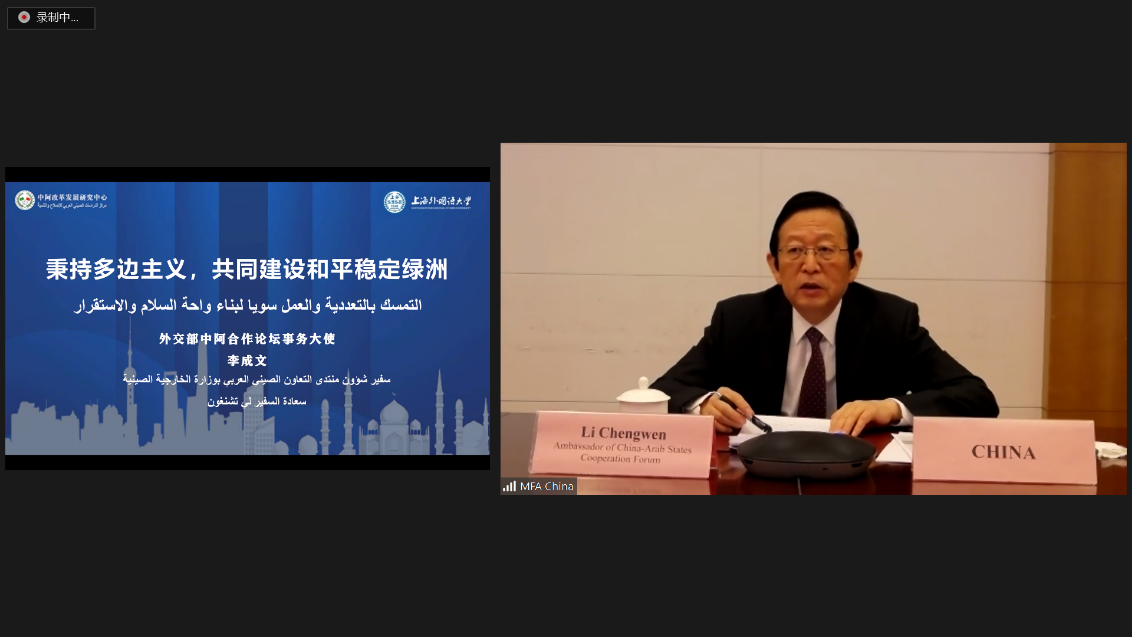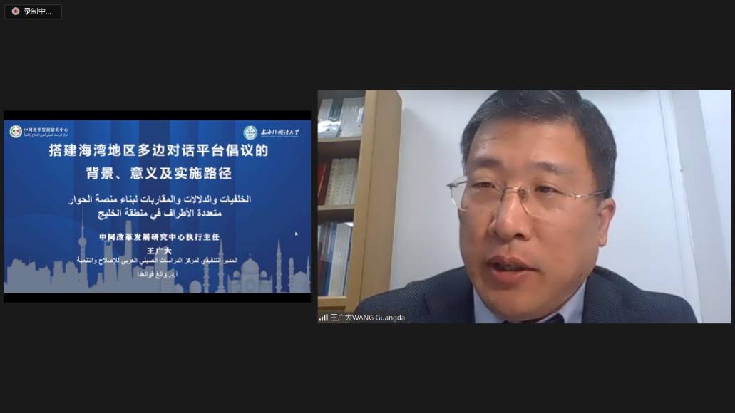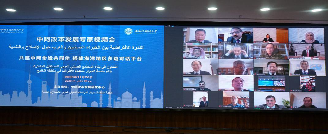 11月26日,上海外国语大学|中阿改革发展研究中心受外交部委托举办“中阿改革发展专家视频会”。本次研讨会主题为“共建中阿命运共同体 搭建海湾地区多边对话平台”。 外交部中阿合作论坛事务大使李成文,苏丹驻华大使加法尔·卡拉尔,上海国际问题研究院学术委员会主任杨洁勉,中国中东学会会长杨光教授,沙特科研与知识交流中心主席叶海亚·本·朱奈德及众多海内外专家学者出席会议。中心专家委员会主任朱威烈教授在专家视频会开幕式上致辞。中心执行主任王广大教授主持开闭幕式。