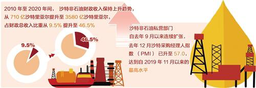 为摆脱对石油经济的依赖,沙特政府持续推进经济多元化发展,去年虽然遭受新冠肺炎疫情影响,但总体来看仍取得一定成绩。沙特财政部数据显示,2010年至2020年间,沙特非石油财政收入保持上升趋势,从710亿沙特里亚尔提升至3580亿沙特里亚尔,占财政总收入比重从9.5%提升至46.5%。