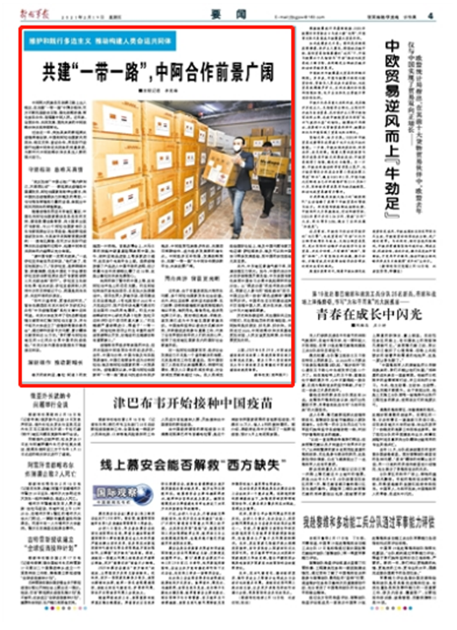 疫情给世界经济带来强烈冲击,但并未阻挡中阿经贸合作的前进步伐。去年,中国与沙特、中国与埃及均实现贸易增长,中国已连续多年成为沙特阿拉伯、埃及等阿拉伯国家的第一大贸易伙伴。疫情暴发以来,中国与阿拉伯国家将“一带一路”建设与抗疫合作同步推进,中阿经贸往来稳步向前,共建项目深耕细作,成为经济发展新的增长点。中阿经济互补性强,发展战略契合,共建“一带一路”为中阿合作提供新平台,未来前景广阔。