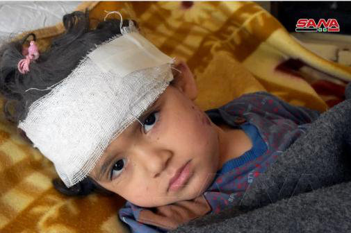 △在今年1月以色列空袭叙利亚哈马省过程中受伤的叙利亚小女孩(图片来自于叙通社)