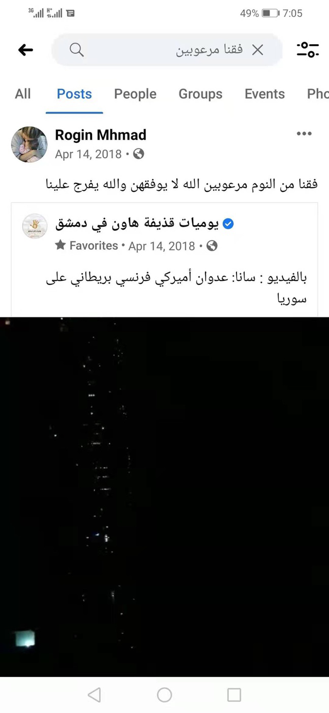 对于生活在当地的民众来说,在睡梦中被空袭的爆炸声惊醒已经是十分稀松平常的事。下面的这个帖子是一位普通的叙利亚母亲在2018年4月被以色列空袭爆炸声惊醒后发的帖子,上面写道:“从轰炸声中惊醒,感到很害怕,希望这一切都能早日结束”。