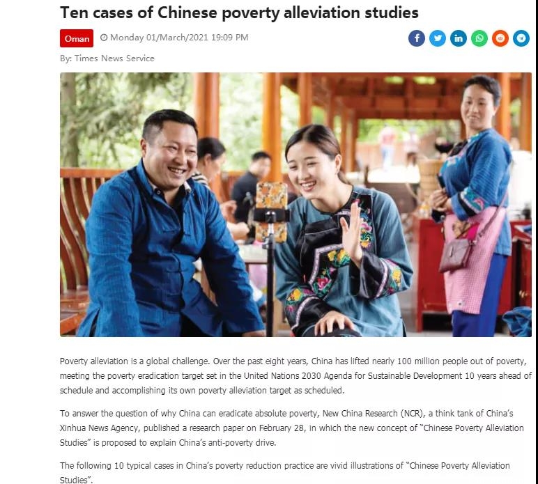 《阿曼时报》转载新华社智库(NCR)报告,共列举10个中国脱贫攻坚的典型案例,介绍中国实现脱贫全面胜利的秘诀。