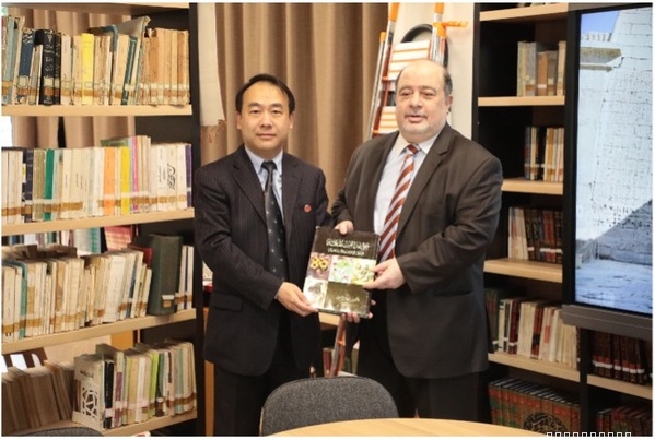 此次来访总领事还为中阿改革发展研究中心和阿语系捐赠了一批阿语书籍,李岩松校长代表校方接受赠书,并回赠礼品。
