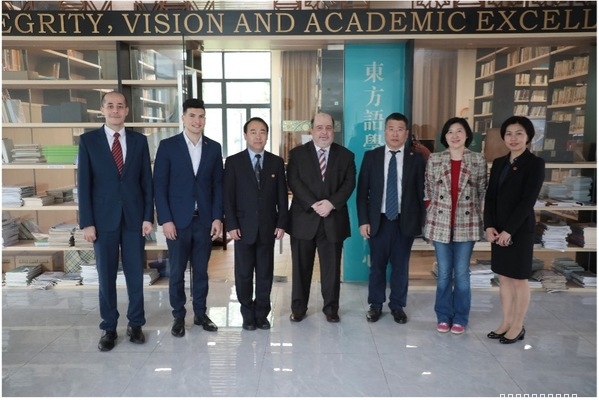之后,总领事一行前往东方语学院,在院文献中心与东方语学院院长程彤教授、副院长陆怡玮副教授、阿拉伯语系副系主任周放副教授、埃及外教马晓宇(Muhmoud Soliman)老师进行座谈。总领事提到曾多次参加阿语系组织的线上线下活动和会议,赞扬和感谢上外阿语系为传播阿语和阿拉伯文化作出的长久努力。同时鼓励阿语系继续为两国高校学生间的互派交流继续贡献力量,尤其在疫情影响全球的形势下,顺应线上教学大趋势,开展创新务实的教学、学术互动新模式。总领事表示愿意为上外和埃及高等院校牵线搭桥,进一步扩大教学和学术交流广度和频度。