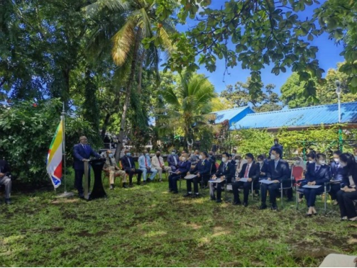 中科交往领域:6月16日,科摩罗总统阿扎利为中国援科短期抗疫医疗队举行授勋仪式。科摩罗政府部分官员、中国驻科摩罗大使何彦军以及中国短期抗疫医疗队全体队员参加了仪式。