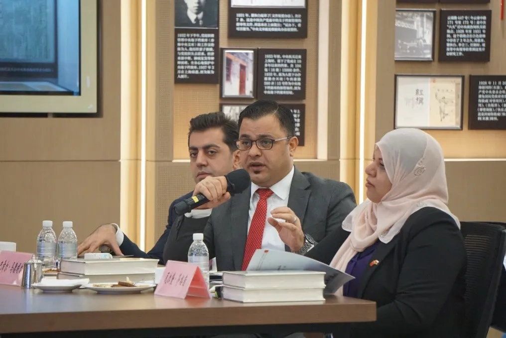伊拉克驻华使馆一秘巴希尔·杰莱哈维在中共上海市委党校聆听《解读“十四五”规划、新发展理念和格局、脱贫攻坚》的讲座后向主讲人提问