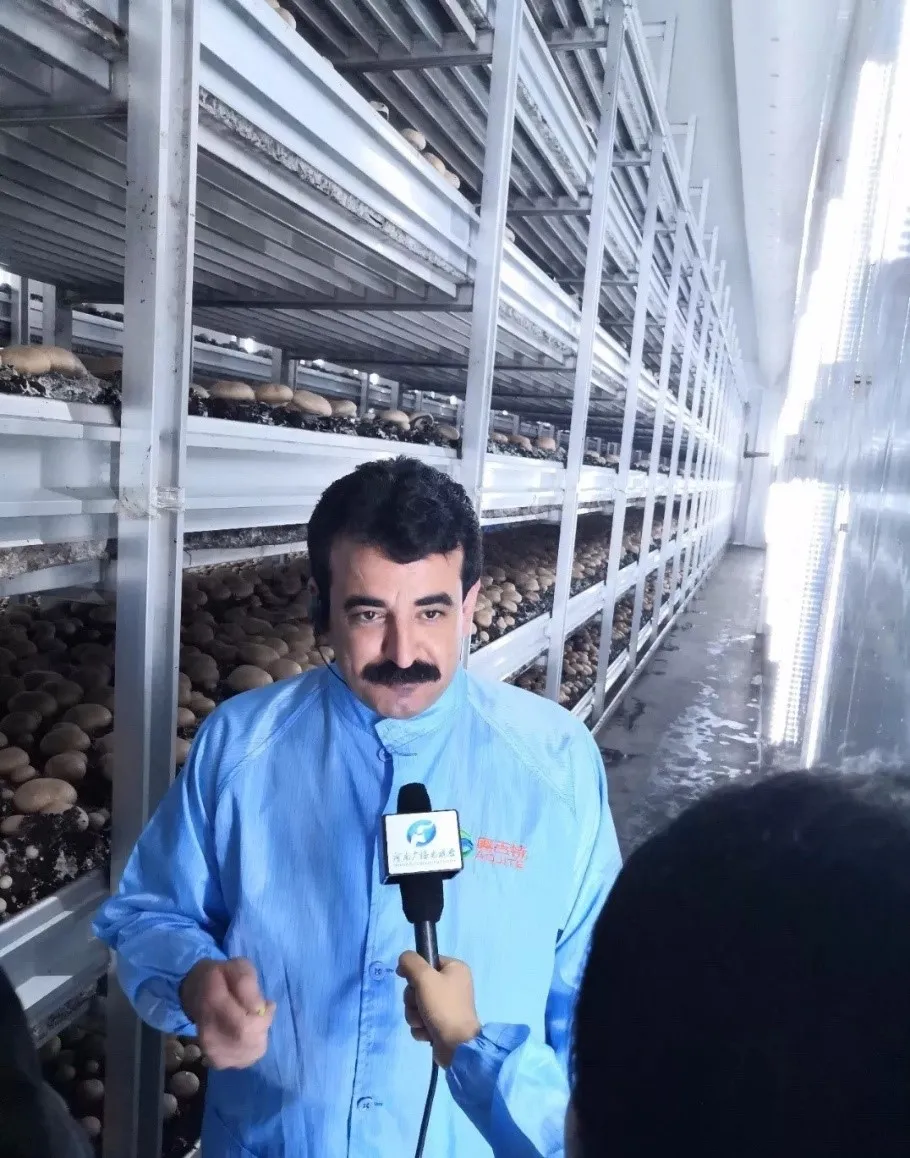 巴勒斯坦人民斗争阵线中央委员阿莱·迪克在由中联部和河南省委共同举办的“中国共产党的故事——习近平新时代中国特色社会主义思想在河南的实践”专题宣介会期间考察兰考县某扶贫企业的蘑菇工厂,学习脱贫减困的新思路