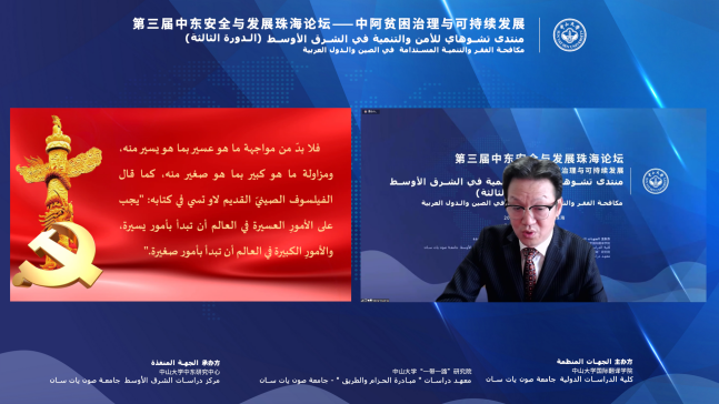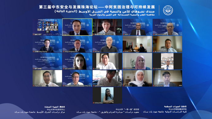 2022年9月24日,由中山大学举办的“第三届中东安全与发展珠海论坛——中阿贫困治理与可持续发展”国际研讨会以在线方式顺利召开。来自中国、叙利亚、阿尔及利亚、科威特、伊拉克、利比亚、突尼斯、埃及、黎巴嫩、约旦的30余位专家学者提交发言。中阿改革发展研究中心理事王有勇教授、王广大教授参加会议并发言。