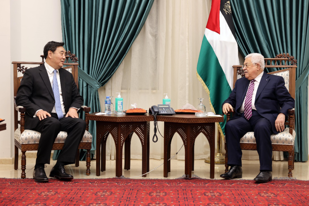 2022年11月10日,中国政府中东问题特使翟隽访问巴勒斯坦,阿巴斯总统在拉马拉总统府会见翟一行,双方就中巴关系、中阿合作论坛建设和巴勒斯坦问题等共同关心的国际和地区问题交换了意见。