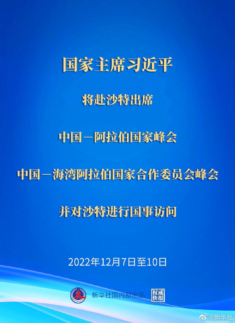 【权威快报 | 习近平将出席中国-阿拉伯国家峰会、中国-海湾阿拉伯国家合作委员会峰会并对沙特进行国事访问】外交部发言人华春莹12月7日宣布:应沙特阿拉伯王国国王萨勒曼邀请,国家主席习近平将于12月7日至10日赴沙特利雅得出席首届中国-阿拉伯国家峰会、中国-海湾阿拉伯国家合作委员会峰会并对沙特进行国事访问。