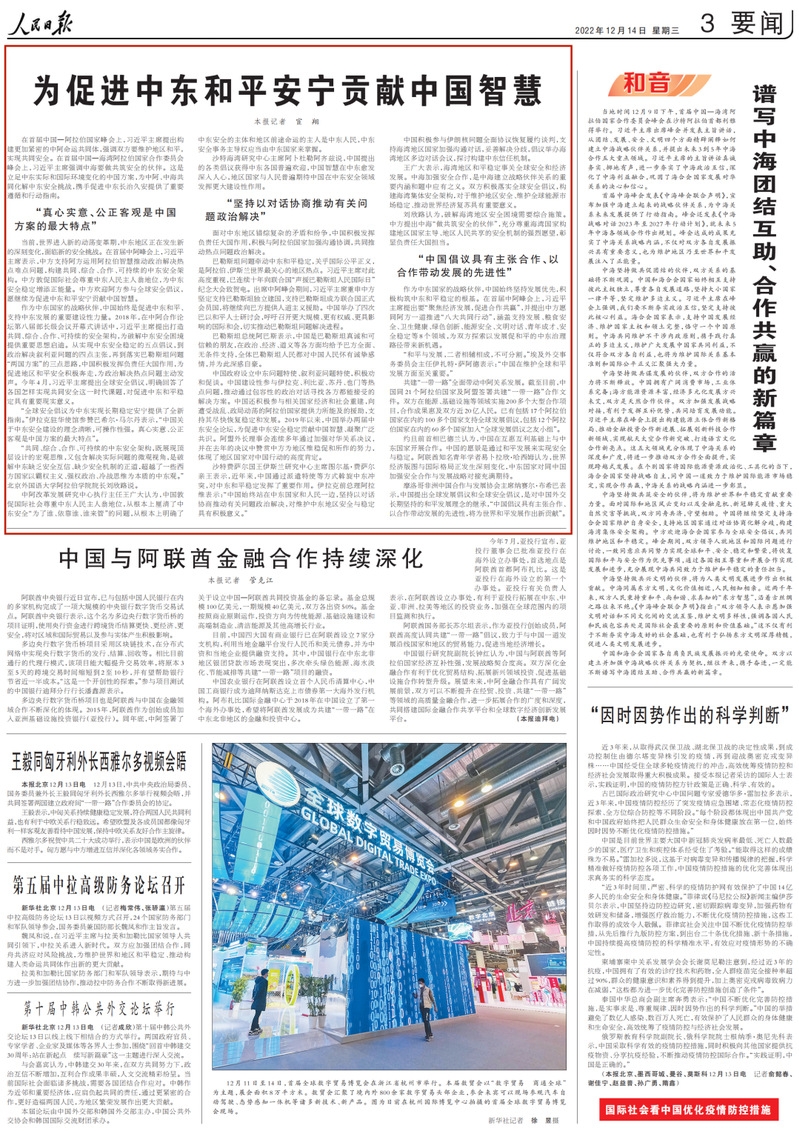 12月14日,中阿改革发展研究中心执行主任王广大教授就中东安全接受《人民日报》采访,文章刊登于《人民日报》第三版头条。