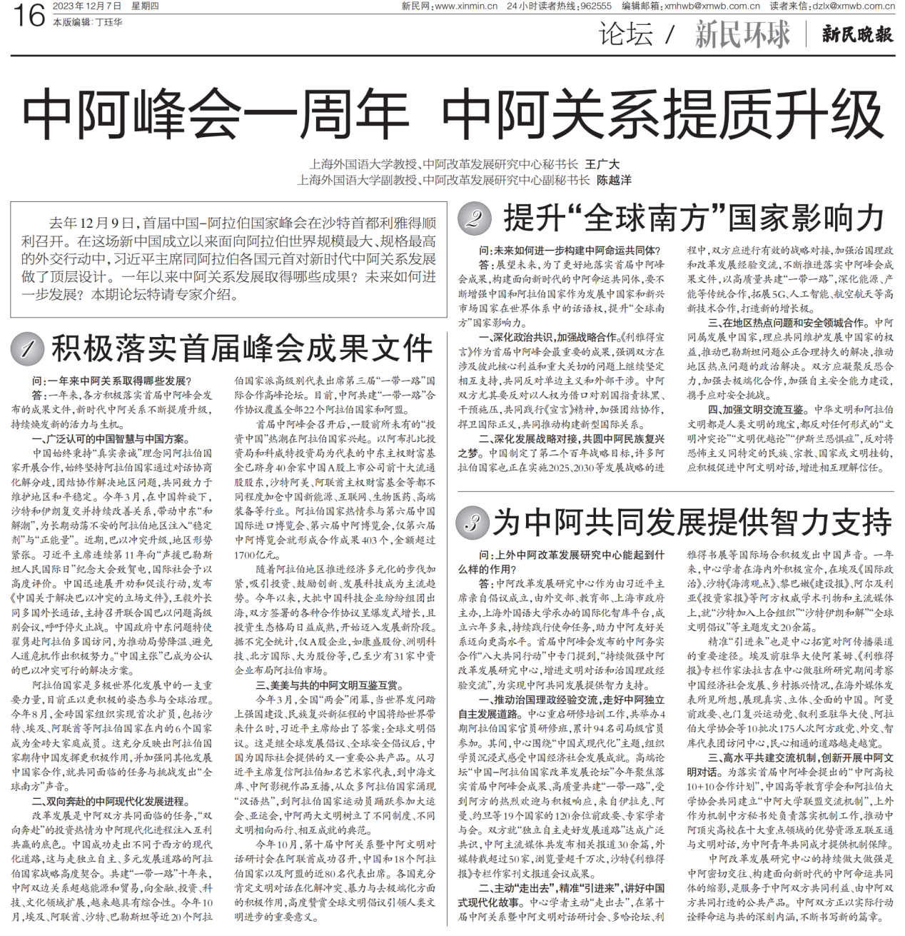 上海外国语大学教授、中阿改革发展研究中心秘书长 王广大