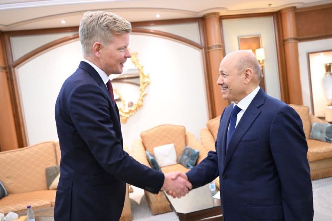 联合国也门问题特使会见也门总统领导委员会主席(图片来源:央视新闻)