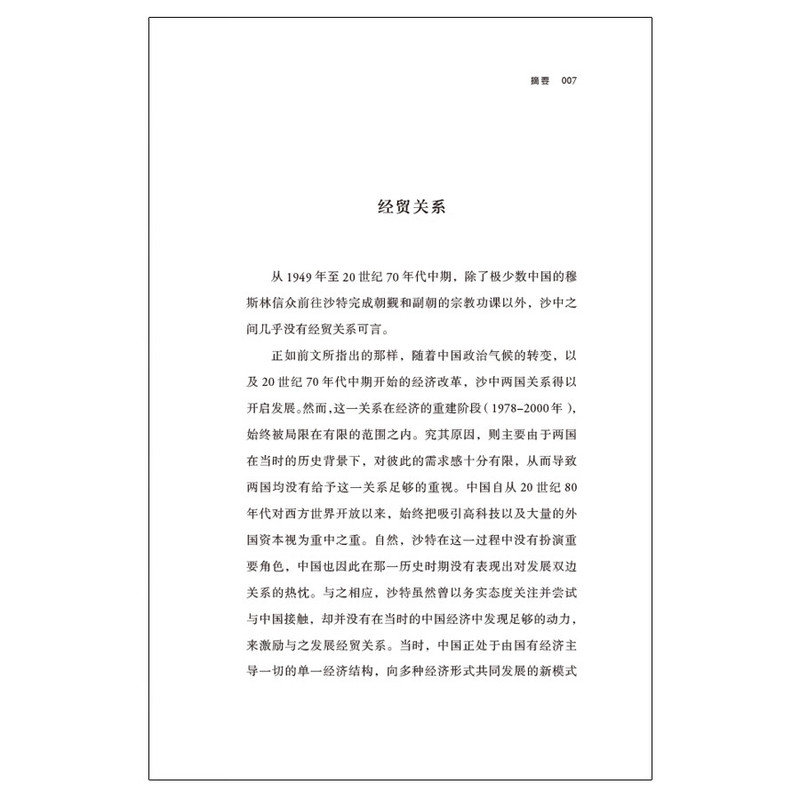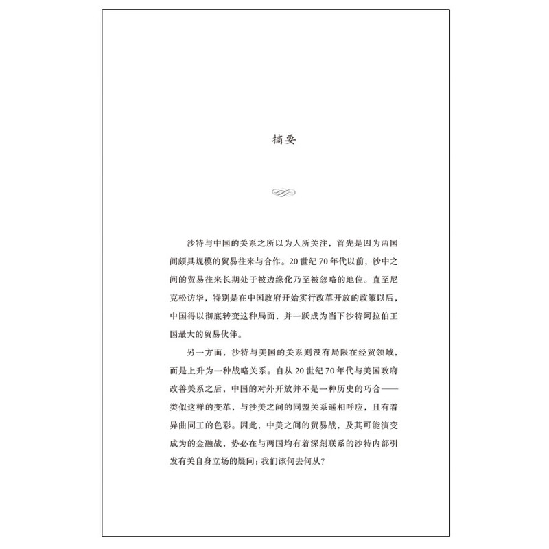 著作首先论述了作者眼中的中国传统哲学思想及其在当代中国发展进程中的延续和运用,而后聚焦沙中关系发展的过去、现状和未来,对双边政治和经贸关系的发展脉络进行了客观、全面的梳理。同时,本作分别结合中沙两国同美国、伊朗的关系现状,从正在发生深刻变化的中东地缘政治与国际局势出发,对未来沙特与中国关系可能出现的10种情景做出了分析研判,并以此为基础提出了务实建议。本作展现出沙特在发展对华关系过程中愈发突显的务实主义态度,及其在维护和发展与美国同盟关系的同时,力求“左右逢源”、规避“选边站队”、淡化“惟命是从”标签的新策略。