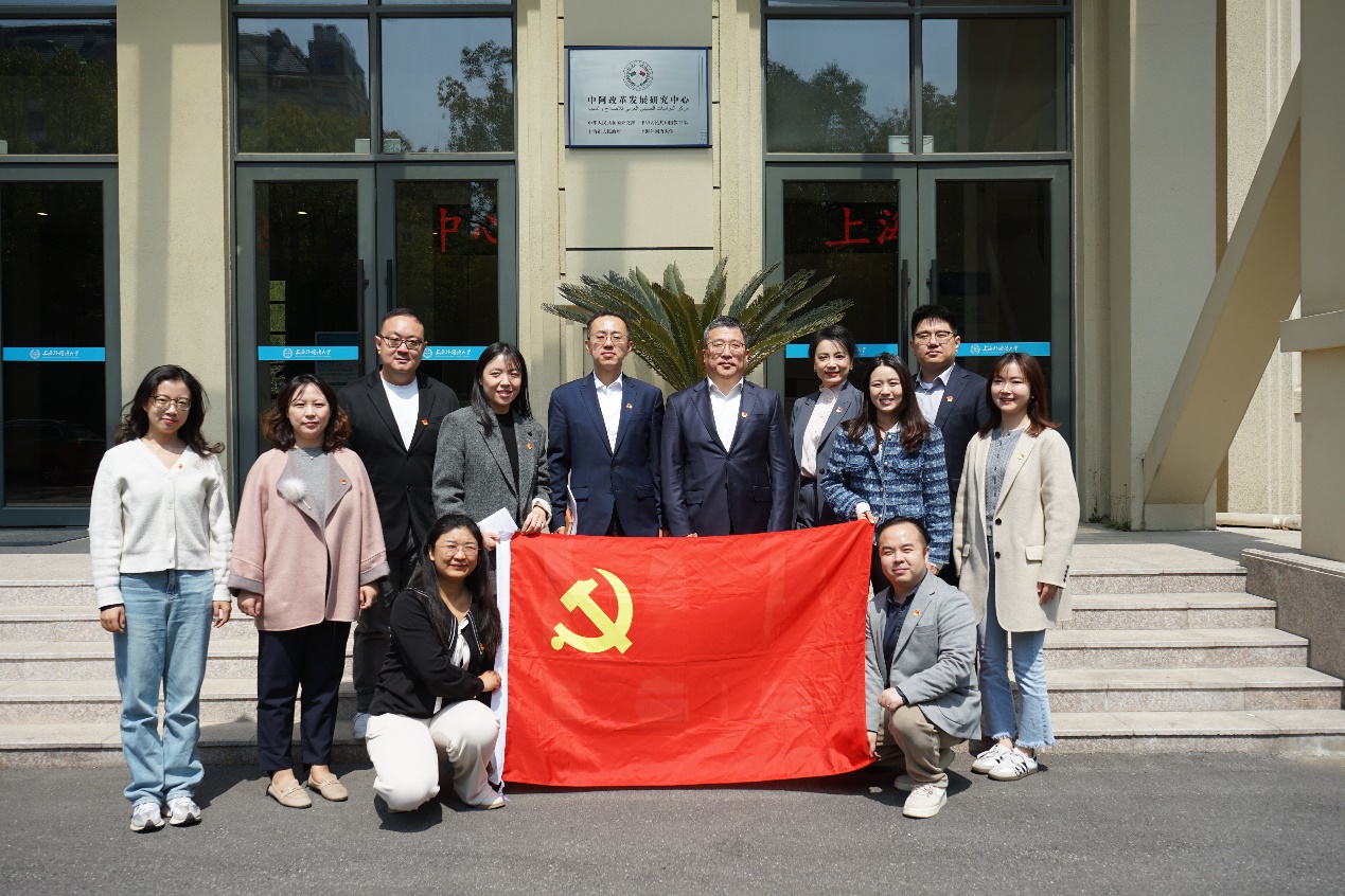 3月22日上午,中阿改革发展研究中心与中央广播电视总台CGTN阿语部在上外松江校区举行党支部共建活动,中心支部书记王广大,副书记兼纪检委员陈越洋,总台CGTN阿语部副主任、阿语部支部纪检委员申旭,支部宣传委员卞莉,及两支部 10余名党员代表参加活动。