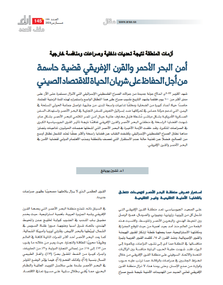 近日,中心副秘书长陈越洋副教授在沙特《海湾观点》杂志发文:《人类安全共同体:中国为红海与非洲之角安全注入“稳定剂”》,文章摘要如下: