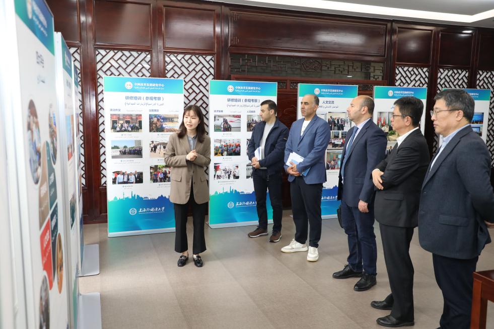 代表团一行还参观了中阿改革发展研究中心展览室,深入了解了中心自成立以来在研修培训、人才培养、智库研究、人文交流等方面的成果。
