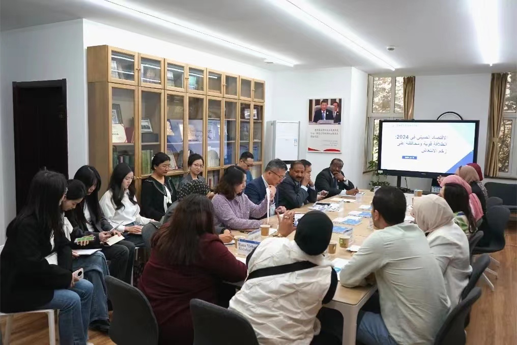 12日,埃及智库媒体代表团与中心学者举行座谈交流。中心秘书长王广大教授用详实的数据、案例介绍了2024年中国经济良好走势,并对“中国经济见顶论”“中国产能过剩论”等进行重点回应。