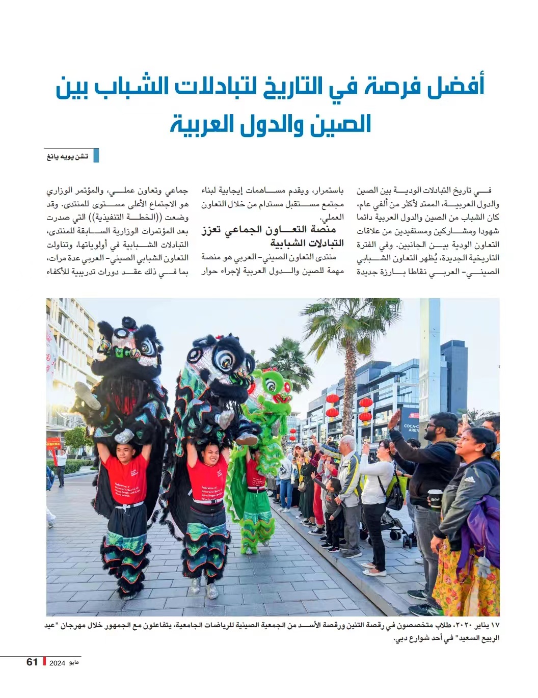 专栏本篇推出的是中阿改革发展研究中心副秘书长陈越洋副教授的文章《构建新时代中阿命运共同体为中阿青年交流创造历史最好机遇》。该文发表于中阿改革发展研究中心与《今日中国》(阿文版)共同策划出版的《中阿合作论坛二十周年》5月号正刊。文章摘要如下: