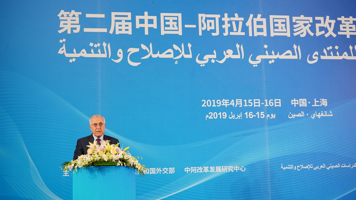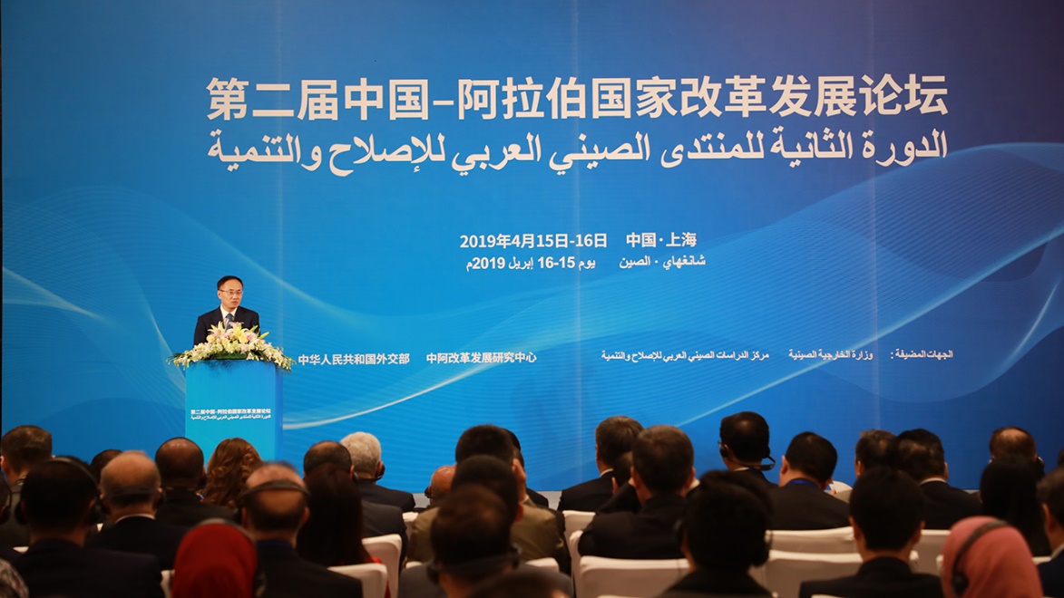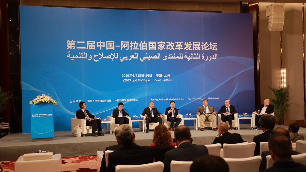 2019年4月16日,第二届中国—阿拉伯国家改革发展论坛由外交部依托中阿改革发展研究中心在上海外国语大学召开,本届论坛主题为“共建‘一带一路’,共享发展繁荣”。外交部部长助理陈晓东、外交部前副部长杨福昌、上海市人民政府副秘书长顾金山、上海外国语大学党委书记姜锋、上海外国语大学校长李岩松、黎巴嫩前总统米歇尔·苏莱曼、吉布提前总理迪莱塔·穆罕默德、埃及前外长穆罕默德·法赫米、阿盟助理秘书长哈利勒及阿拉伯国家驻华使节、阿盟驻华代表、中阿双方官员、专家学者、媒体代表、工商界人士等140余名中外代表共同参会。外交部中阿合作论坛事务大使、中阿改革发展研究中心理事长李成文主持开幕式。