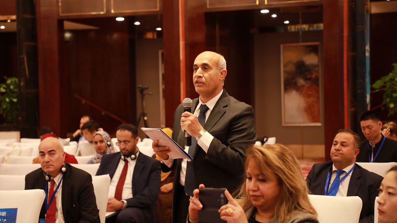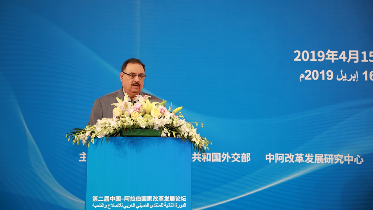 阿盟助理秘书长哈利勒代表阿盟致辞,他认为中阿开启外交关系六十多年来,双边、多边关系实现了跨越式发展,这源自双方的相互尊重和互惠共赢理念。中阿合作论坛成立15年来,在政治、经济、文化、新闻发展等各个领域设立了合作机制,这充分表明论坛在加强双方在政治、经济、社会等各个领域沟通与合作方面是务实而又成功的。中阿改革发展研究中心的建立是增进中阿双方沟通交流的又一有效平台。阿盟多次组织代表团参加中心的相关活动,“我们不远万里来到中国,就是为了从古老的文明和文化交往中获取新的思想和灵感,通过文明的互鉴和相互学习来实现共同发展和进步,我们希望通过‘一带一路’倡议来推动双边关系的发展。”