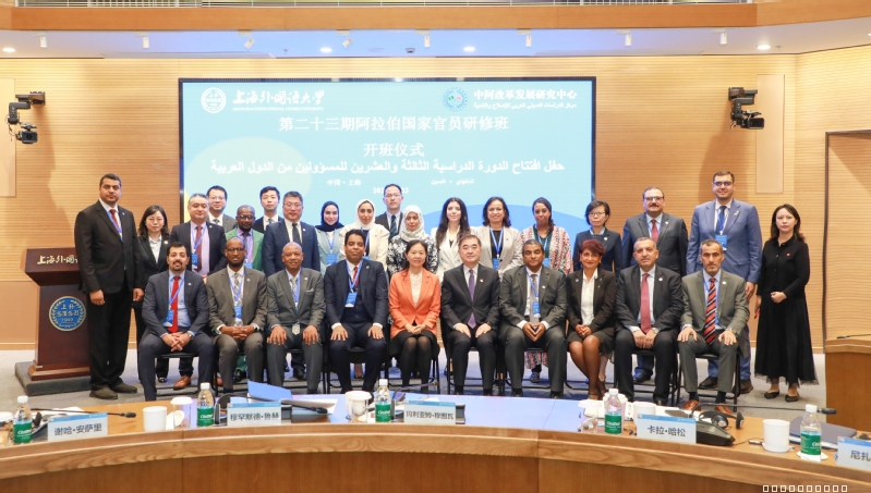 10月23日上午,中阿改革发展研究中心(以下简称“中心”)第二十三期阿拉伯国家官员研修班开班仪式在上海外国语大学松江校区举行。来自17个阿拉伯国家和阿盟秘书处的20位官员参加本期阿拉伯国家官员多边研修班。中国外交部中阿合作论坛事务大使李琛,中阿改革发展研究中心理事长、上海外国语大学党委书记尹冬梅出席开班仪式。