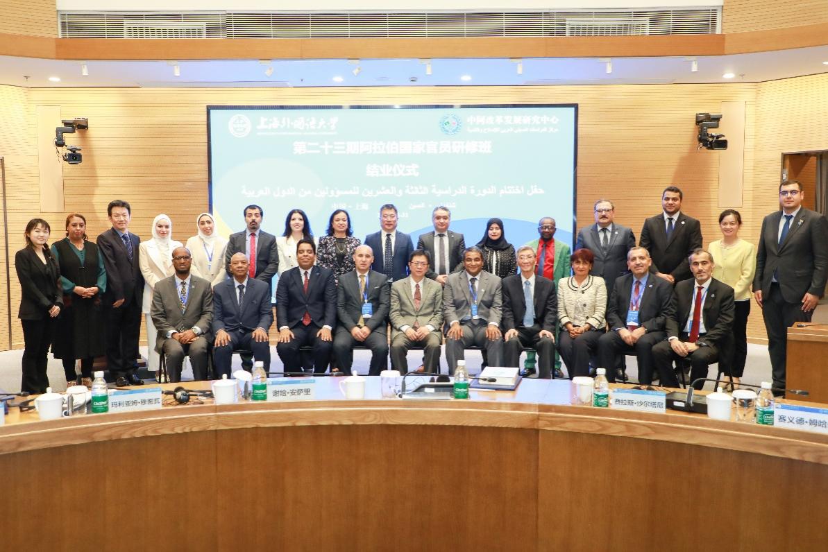 1031日,中阿改革发展研究中心(以下简称“中心”)受外交部委托举办的第二十三期阿拉伯国家官员研修班结业仪式在上海外国语大学松江校区穹顶会议室举行。