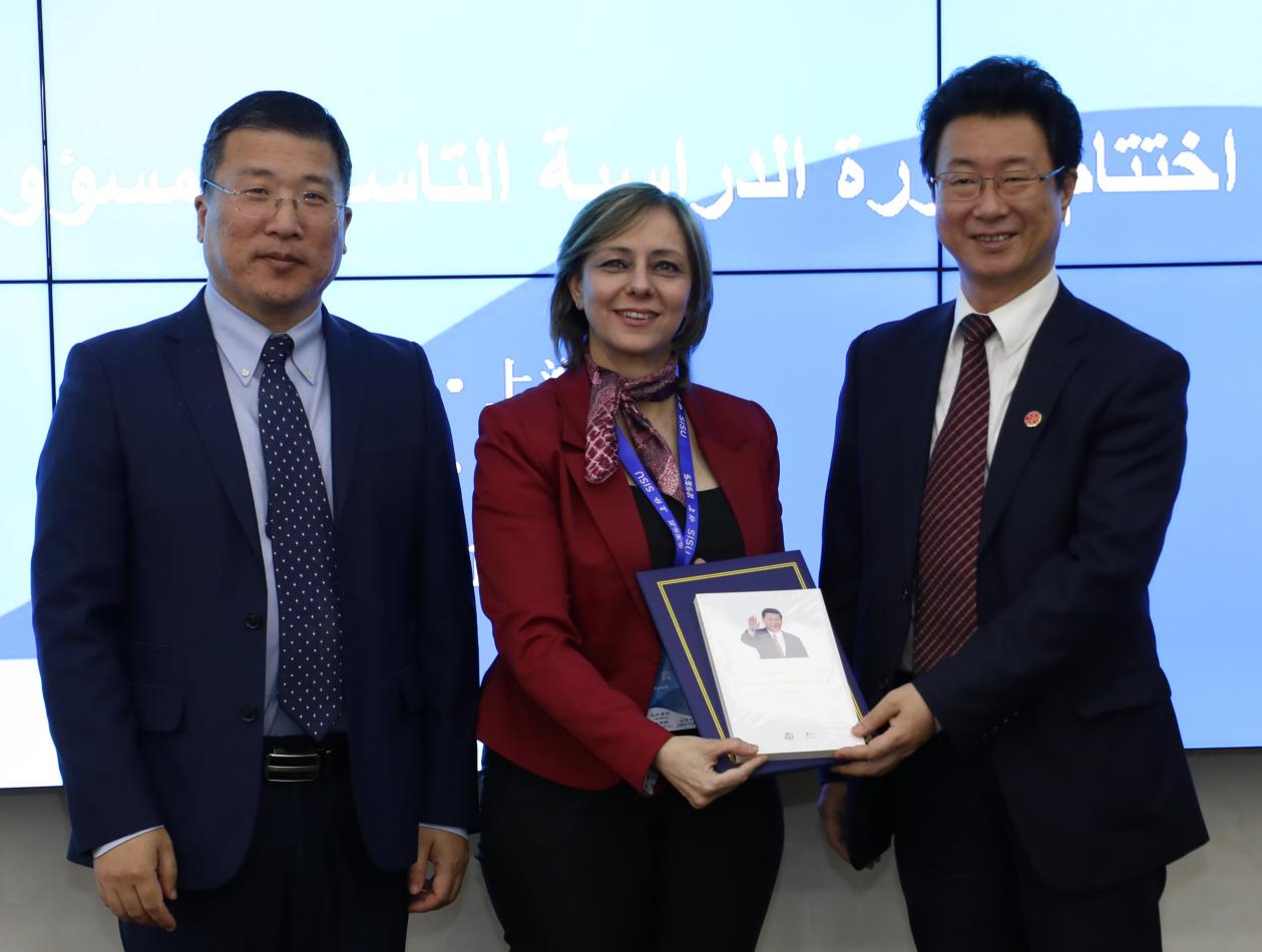 26日下午,研修班举行结业仪式,上海外国语大学副校长查明建,叙利亚计划与国际合作署副署长苏莱娅·伊德利比等先后致辞。