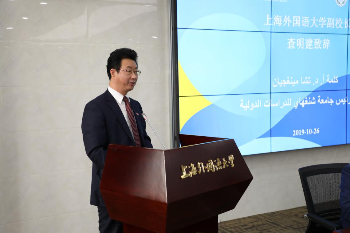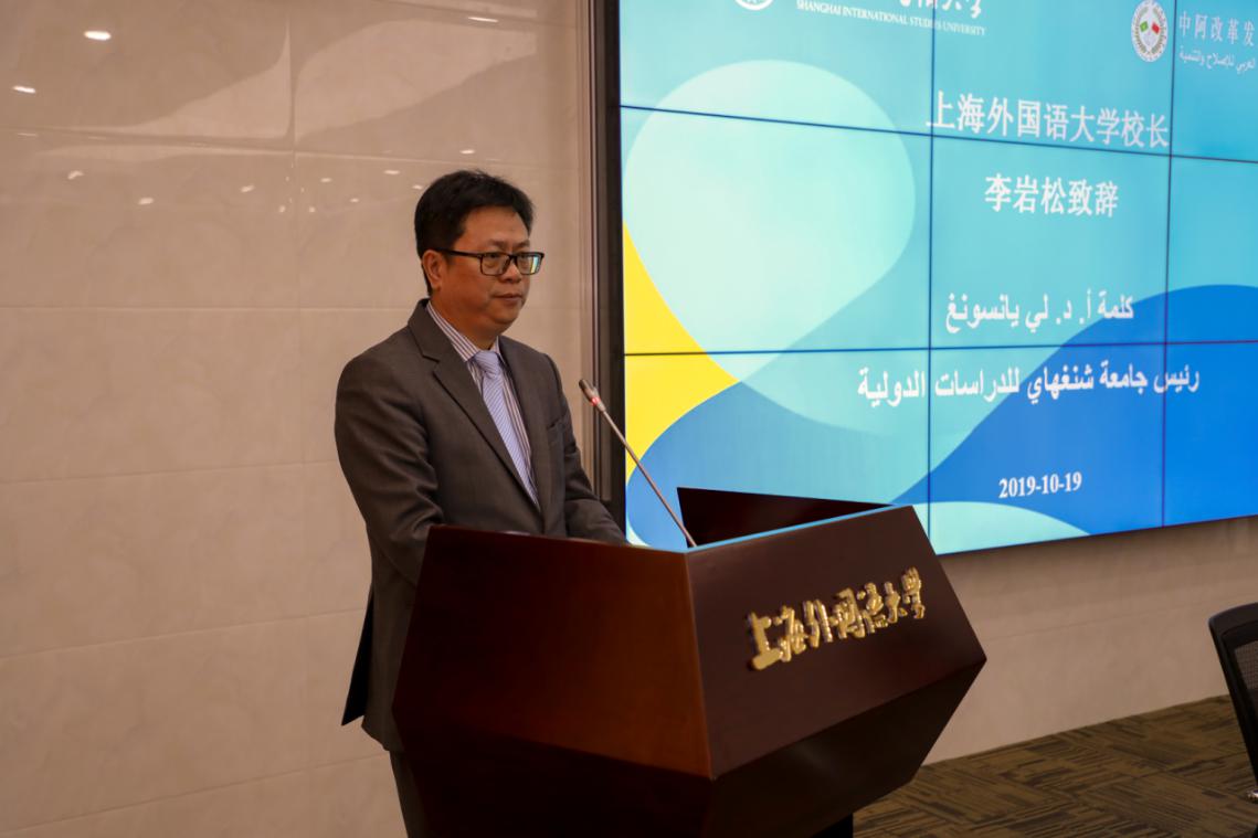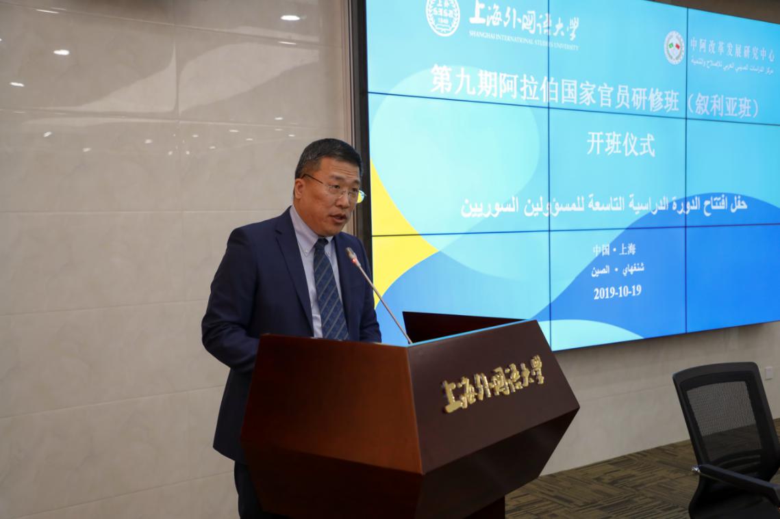 19日上午,开班仪式在松江校区国际教育中心举行。上海外国语大学校长、中阿改革发展研究中心理事长李岩松,中国政府叙利亚问题特使解晓岩,叙利亚计划与国际合作署副署长苏莱娅·伊德利比先后致辞。中心理事会秘书长、执行主任王广大主持开班仪式。