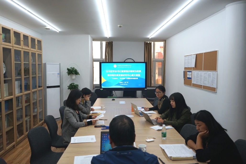 随后,各位党员围绕《改革发展新风推动中阿互联互通—— 进一步发挥中阿改革发展研究中心对阿交流的平台优势》调研报告,讨论中心“四大平台”建设遇到的发展问题及解决措施,并提出对未来发展的期望和目标:研修培训方面,应提高前瞻性、针对性与专业性,共同建设紧张有序、团结上进的工作秩序和团队精神;人才培养方面,确立以语言人才构筑中阿友谊桥梁的基调,不断更新和完善课程体系建设;智库研究方面,加强以交流改革发展、治国理政为中心的智库研究,产出更多具有针对性和务实性的研究成果;人文交流方面,利用在阿拉伯国家的人脉资源,不断推动与阿方智库的交流与合作。