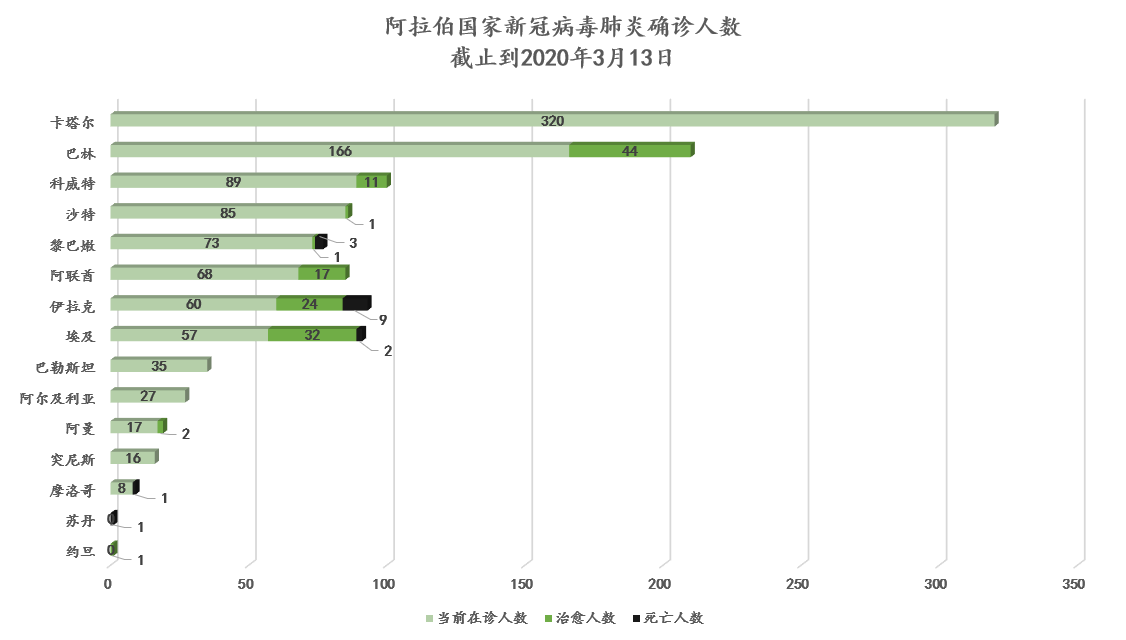 3月13日,10个阿拉伯国家出现新增确诊病例,共计新增158例,其中卡塔尔58例,苏丹确诊首例,已经死亡。目前,疫情较严重国家持续升级疫情防控措施,严格控制出入境、加强公共场所居民体温检测;其余确诊病例相对较少国家,不断加强疫情防范宣传、排查本国医疗物资储备和应对疫情能力,充分利用他国争取的“时间窗口”,做好防疫准备工作。埃及媒体刊载王毅外长署名文章,中国驻黎巴嫩大使发文宣传中国抗疫经验,突尼斯新任外长赞赏中国抗疫举措,中国的抗疫努力得到众多国家认可。