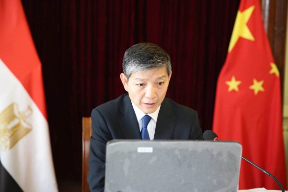 廖力强大使应邀出席埃及加利基金会视频研讨会,重点介绍中国抗击新冠肺炎疫情的主要经验,高度评价埃及政府的防控举措,表示中方愿继续与埃及就疫情防控保持沟通合作,分享防控、诊疗经验,共同维护地区和国际卫生安全。