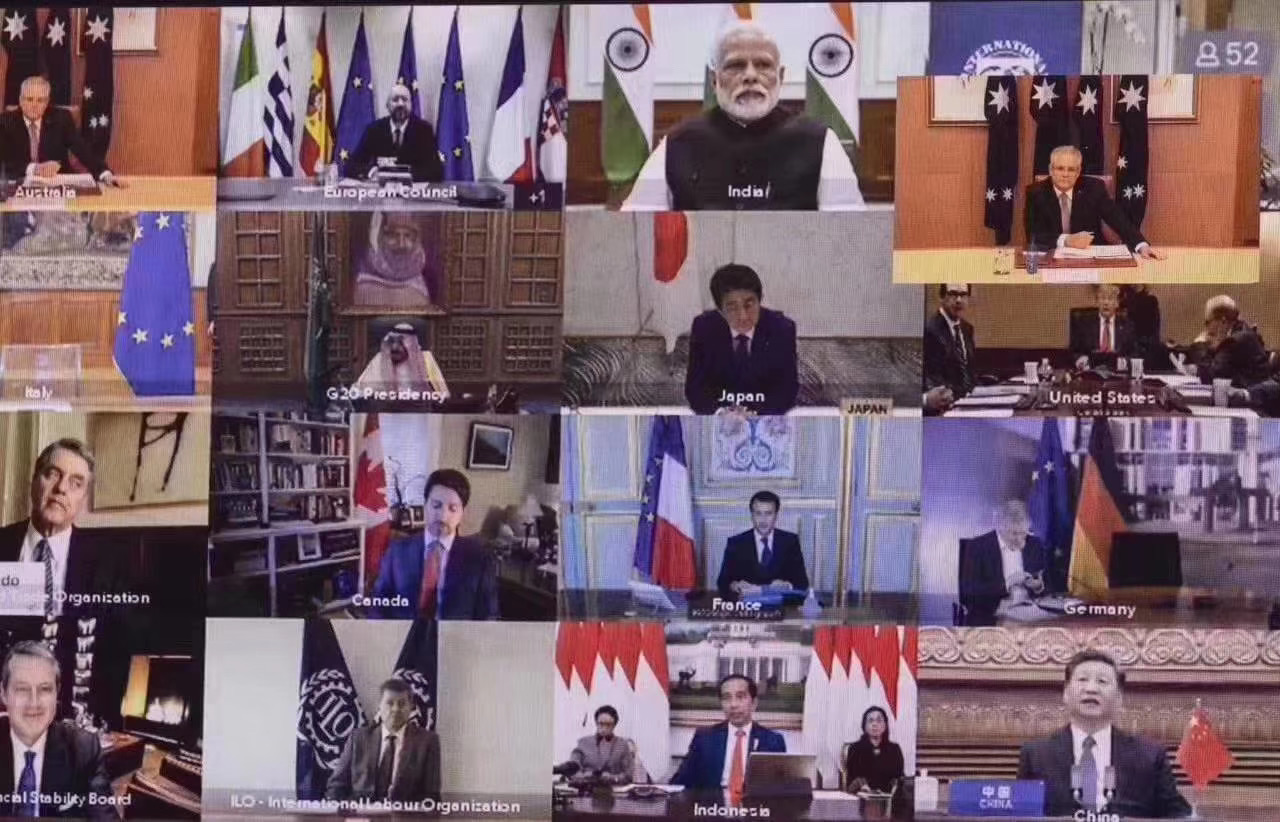 3月26日晚,沙特主办的二十国集团领导人应对新冠肺炎特别峰会以视频方式召开。二十国集团成员和嘉宾国领导人以及世卫组织、联合国、国际货币基金组织、世界银行等国际组织负责人与会。峰会发表了《二十国集团领导人应对新冠肺炎特别峰会声明》。习近平主席在峰会上提出四点倡议:坚决打好新冠肺炎疫情防控全球阻击战;有效开展国际联防联控;积极支持国际组织发挥作用;加强国际宏观经济政策协调。