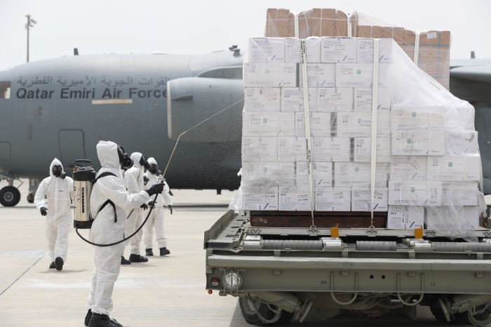 埃米尔塔米姆指示卡塔尔阿米利航空指派战略运输加油机与中国商务部合作将首批援助医疗用品运抵卡塔尔。