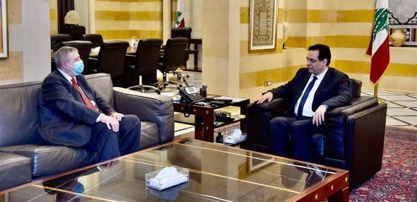 总理哈桑·迪亚卜会见联合国黎巴嫩问题特别协调员扬·库比奇,交流黎巴嫩疫情现状和联合国协调援助计划。