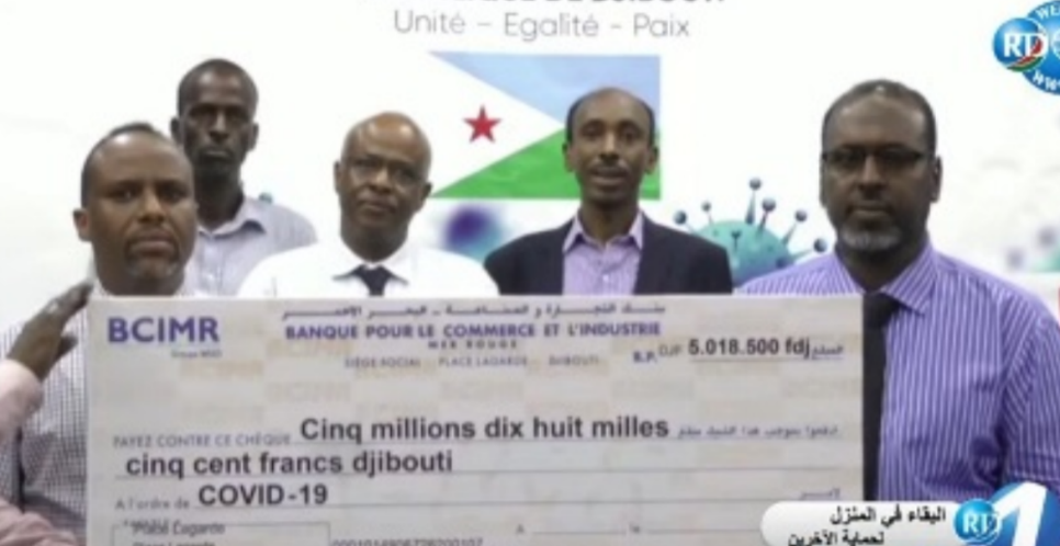 在总统盖莱发起“抗疫基金”后,各方纷纷响应总统号召进行捐款,支持国家抗击新冠病毒肺炎疫情。据财务部统计,SOGEC公司捐赠1亿吉布提法郎;Nael集团捐赠5000万吉布提法郎;Kubesh公司捐赠2000万吉布提法郎;国民议会议员捐款850万吉布提法郎;财政部员工捐款500万吉布提法郎,卡马格公司捐款500万吉布提法郎。(1吉布提法郎≈0.04元)