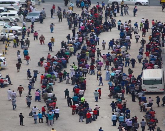 《科威特时报》:杰里布地区和马哈布拉地区全面封锁第二天,大批民众排队充灌煤气时未保持安全距离,存在较大安全隐患。